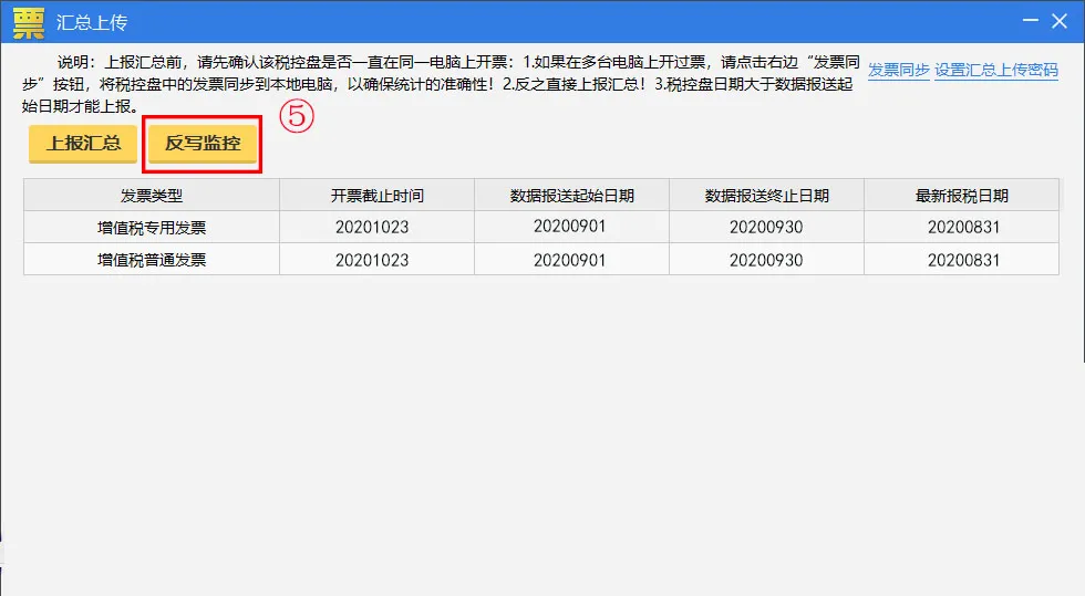 操作流程:【数据管理】-【汇总上传】-点击【反写监控】。