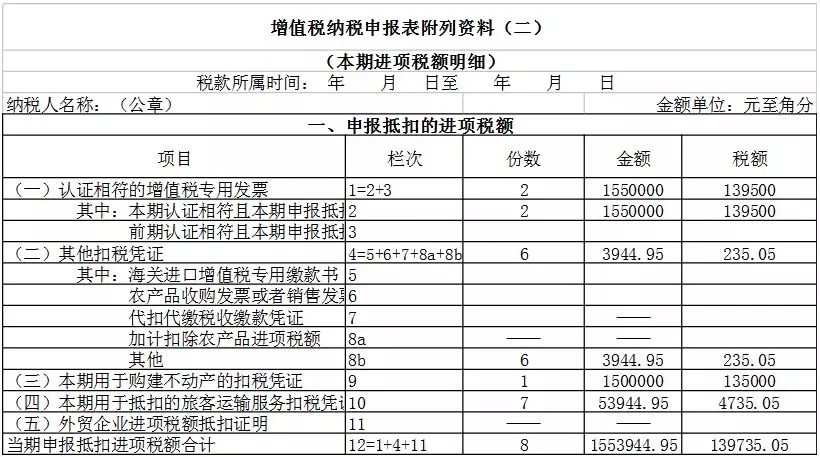 2.《附列资料(二)》第2行“其中:本期认证相符且本期申报抵扣”: