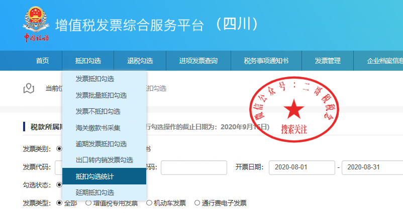 7、勾选提交后,我们点击抵扣勾选统计对勾选提交的信息进行统计查询。